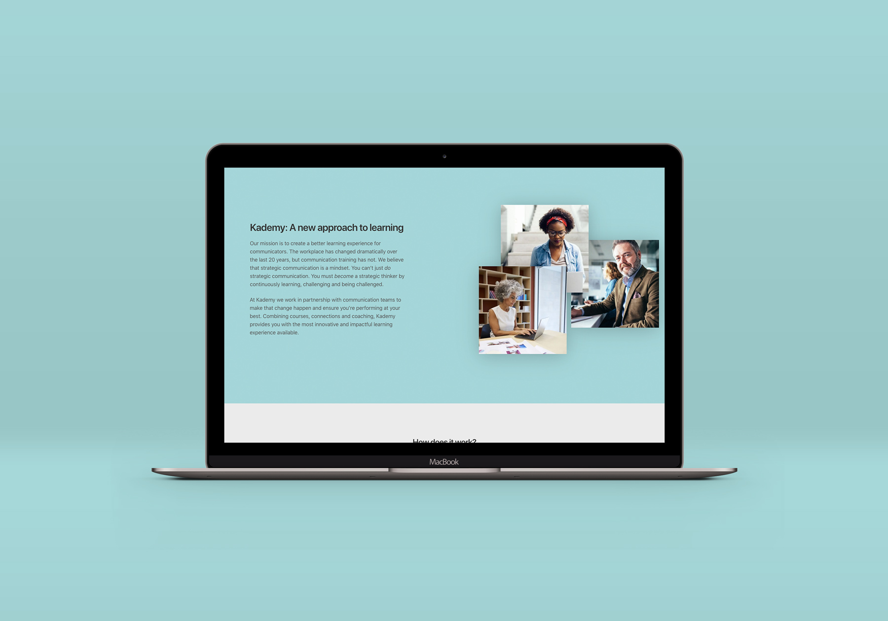 Studio Kidd created a website that clearly set out what Kademy is all about. Once launched the site will be the place for users to connect to their learning and social platforms and for new users to sign up.