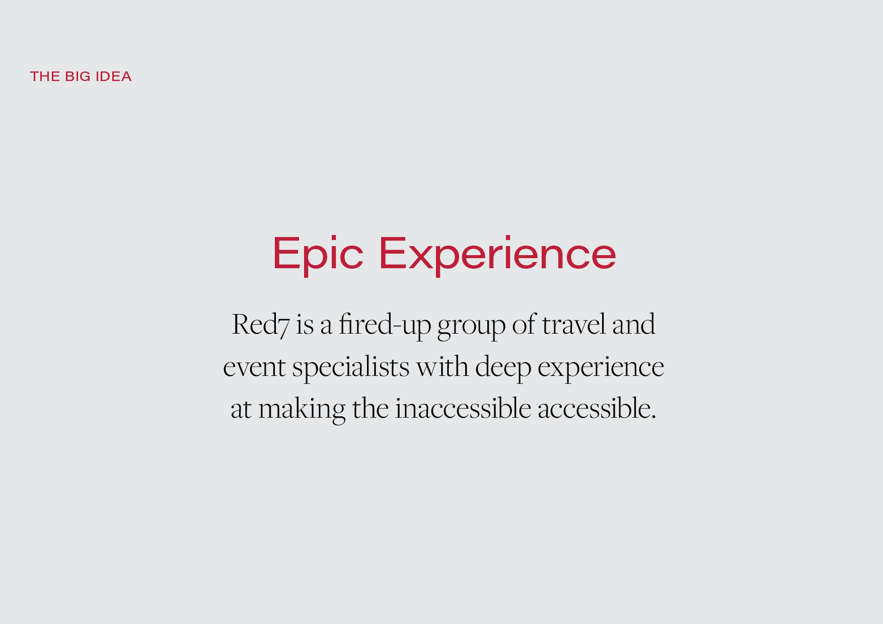 Founder Ian Lucas had a plan to pivot the business and Studio Kidd assisted in bringing his vision to life. He built on existing team, experience and infrastructure that made Red7 successful for over 21 years and gave it a new twist; luxury group travel.