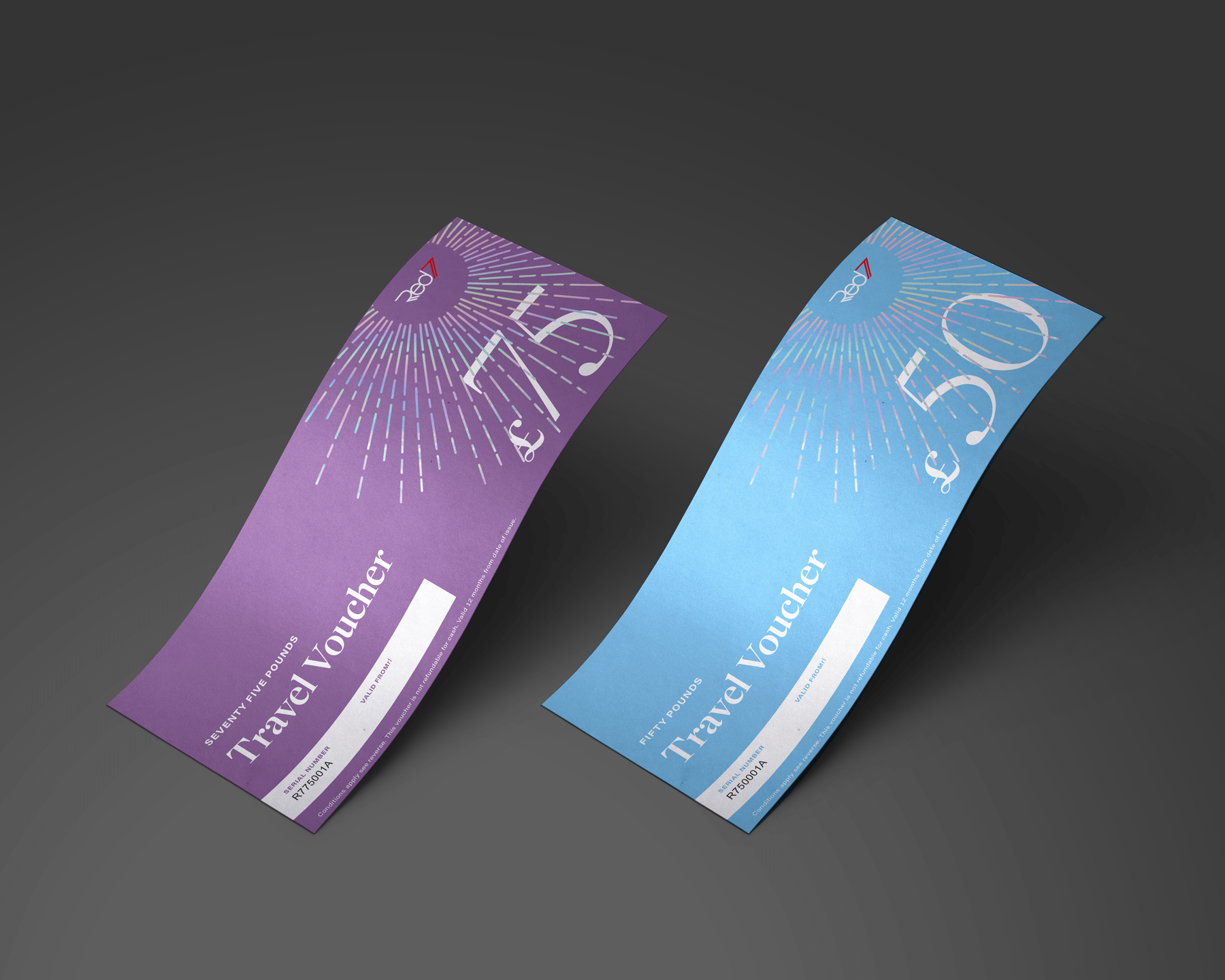 We also designed a business brochure with a black, foil blocked cover and gift vouchers using amazing copy proof holographic foil.