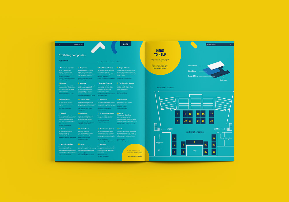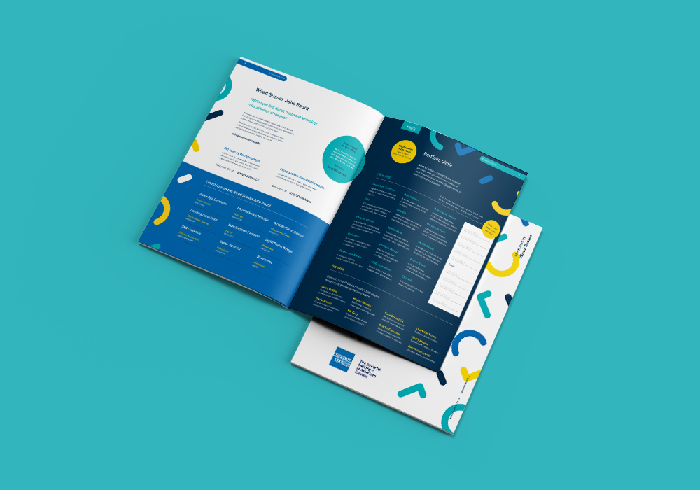 We rolled out a new colour palette, typography, logo and imagery for 2019 which had had really positive feedback. We worked closely with Wired Sussex to align their communications, advertising and the event graphics and created a printed guide to the event.